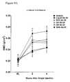 Areal bone mineral density (BMD) was determined from anesthetized rats (isoflurane) by dual-energy X-ray absorptiometry (DXA, Hologic QDR 4500a, Hologic Inc., Bedford, Mass.). Baseline BMD was determined 4 days before treatment was initiated. BMD was also determined atweeks 2, 3, 4, 6 and 8 after treatment (day 0). The region of interest (ROI) included the lumbar vertebrae (LV1-5) and the “leg” (femur-tibia [entire femur in addition to the part of tibia above tibia/fibular junction]).