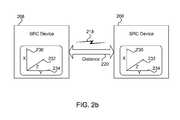 As illustrated inFIG. 2b, theSRC device208 can include multipleorthogonal antennas230,232,234. The multiple orthogonal antennas can be used to provide magnetic induction diversity, thereby enabling the proximity boundary to be relatively sharply defined, as previously discussed. In one embodiment, eachSRC device208 can include two or more orthogonal antennas. In another embodiment, one SRC device may have a single antenna and another SRC device can include two or more orthogonal antennas.