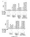 All cells used in the assay were betweenpassage 3 to 5. RASMCs were plated at a density of 1×104cells/well in a 24 well plate, allowed to attach and grown to subconfluence in HyQ-DMEM/F12+10% FBS overnight. Cells were then growth arrested by replacing the medium with DMEM (phenol-red free) containing 0.4% BSA for 48 hrs. After 48 hrs, growth was initiated by replacing the medium with DMEM (phenol-red free)+2.5% FCS containing vehicle or appropriate drug concentration for 4 days. Fresh drug-containing medium was added to the cells every 2 days. On the 5thday 50 μl of WST-1 reagent (Roche) was then added to the cells and incubated for 1 hr at 37° C. Absorbance was then determined in the samples at 450 nm wavelength in a Victor plate reader (Perkin-Elmer Inc, USA). The WST-1 assay is based on the estimation of the cleavage of tetrazolium salts to formazan by cellular enzymes. An expansion in the number of viable cells results in an increase in activity of the mitochondrial dehydrogenases in the sample. This increased activity results in increased formazan dye formation which gives an absorbance between 420-480 nm. Absorbance measured is directly correlated to the number of metabolically active cells in culture. Absorbance of the cells in control wells on day 0 (G0) of drug treatment was obtained and the cell proliferation following drug treatment was expressed as a percentage of theday 0 growth.