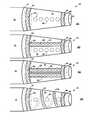 Various examples will be seen, for example, inFIG. 1(B), adevice20 includes that the two annuli are joined by a straightaxial line32 of echoreflective features34isuch as depressions, dimples, or bumps. In this system, not only does the line give a greater indication of the orientation, delivering additional visual information to the physician, but the axial straight line can also disambiguate the location of the distal end about an azimuthal angle, i.e., the angle of rotation of the catheter shaft can become known. In thedevice30 ofFIG. 1(C), adouble line36 of echoreflective features38iare illustrated, with drainage holes on the opposite side of the tapered portion. It will be clear that the echo reflective features may be on the same side as the drainage holes, the opposite side, or in a number of different configurations. In thedevice40 ofFIG. 1(D), ahelical arrangement42 of echoreflective features44iis illustrated between the two annuli. A helical arrangement may be particularly convenient to visualize. However, it is noted that in all implementations, the position and orientation of the distal end of the drainage catheter may be substantially known in an unambiguous fashion under the various imaging modalities.