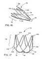FIG. 13 is a longitudinal cross-section view of an embolic filter frame of the present invention, depicting an enhanced radial force caused by vessel wall compression.