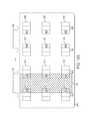 FIG. 20 is an illustration of scan of a top-hat-shaped beam over a film having a plurality of pixels, arranged in columns, for differential crystallization, according to embodiments of the present disclosure. In the method ofFIG. 10,film2000 includes device regions2004-2014. Each device region corresponds to a region to be crystallized where a later device, such as a pixel, transistor, and/or capacitor will be formed. Each device region2004-2014 includes two sub-regions2016-2038. In afirst pulse2002, a beam irradiates thefilm2000 inregion2040, which irradiates sub-regions2020-2030. In asecond pulse2042, the beam irradiatesfilm2000 in sub-regions2028-2038. Accordingly, after two pulses, some sub-regions are irradiated twice2028,2030, while other sub-regions are irradiated only once,2020-2026 and2032-2038. Accordingly, if one scans the entire film in this way, after one scan, the film would contain some regions that were irradiated once (small grain regions for capacitor formation) and some regions that were irradiated twice (large grain regions for TFT formation). Further, if two scans of the film were performed, some regions would be irradiated twice and some regions would be irradiated four times.
