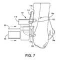 Proximal end1098 ofplunger rod1086 defines ahole1100 that is size and configured to receive apin1118 forcoupling plunger rod1086 tohead1102.Head1102 defines ablind hole1104 that inwardly extend fromdistal end1106 and is sized and configured to receiveproximal end1098 ofplunger rod1086 therein. In some embodiments,top side1108 ofhead1102 includes anangled surface1110 that terminates atside1112.Head1102 also includes an arced surface1114 for providing an ergonomic contour to a user's finger (FIG. 70). Ahole1116 extends throughhead1102 in a direction that is perpendicular to the direction in whichblind hole1104 extends and is configured to align withhole1100 ofplunger rod1086 forcoupling plunger rod1086 to head1102 usingpin1118. Although a cross-pin arrangement is described, one of ordinary skill in the art will understand that other coupling means may be used tocouple head1102 toplunger rod1086 including, but not limited to, a taper fit, ultrasonic welding, a snap fit arrangement, or the use of adhesive to list but only a few possibilities.
