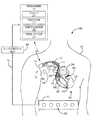 System100 further includes an array ofsurface electrodes182, which may be carried by a belt orstrap180 adapted to be wrapped around the torso ofpatient114 to positionelectrodes182 in the vicinity ofheart112.Strap180 is shown inferior toheart112 inFIG. 1, but it is understood thatbelt180 may be positioned in a relatively more superior position to surroundheart112 such thatelectrodes180 are positioned nearer toheart112.Electrodes182 are used to acquire surface signals fromheart112 during a CRT optimization session. A CRT control parameter, such as the AV delay and/or VV delay may be optimized by adjusting the parameter until the surface ECG-based determinations of ventricular activation indicate optimally synchronized ventricular activation. EGM data is then generated byIMD10 at the optimized parameter setting and multiple increments/decrements from the optimal delay setting to establish EGM-based dyssynchrony index data and its relationship to increments or decrements from optimal control parameter settings, specific to the patient. The EGM-based data is used byIMD10 to adjust the control parameter in a closed loop to maintain optimized ventricular activation.