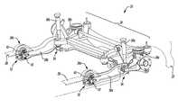 InFIG. 1, thesuspension assembly20 that is illustrated is configured to support the rear wheels of thevehicle22. Therefore, the first and secondlongitudinal arms30a,30bmay alternatively be referred to as trailing arms. However, it should be appreciated that the disclosedsuspension assembly20 may also be configured to support the front wheels of thevehicle22. In accordance with such a configuration, the first and secondlongitudinal arms30a,30bmay alternatively be referred to as leading arms. It should be understood that the subject disclosure relates to and envisions both arrangements.