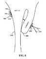 In still other embodiments, an implant may not be used to secure a turbinate proximal to the septum. Instead, a flexible member or suture may be inserted through the turbinate and septum and a knot can be tied in the suture. Referring now toFIG. 10A, aninsertion device305 comprises acurved portion325 and a pointed or taperedsurface315 proximal to anend395.Insertion device305 further comprises a retaining channel or slot345 configured to retain asuture205.Insertion device305 can be used to pierce a turbinate and septum (not shown) in a manner similar to that described above in the discussion ofinsertion device300. However, rather than inserting an implant through the turbinate and septum,insertion device305 inserts suture205 through the turbinate and septum. Retainingslot345 can be configured so thatsuture205 is retained asinsertion device305 is pushed through tissue such as the turbinate or septum. Retainingslot345 can also be configured so that asinsertion device305 is withdrawn back through tissue,suture205 will become disengaged from retainingslot345.