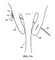 Referring now toFIG. 9A, in certain embodiments,implant100 may be installed in a manner to capture a turbinate405 on the side opposite ofseptum410 fromturbinate400.Insertion device300 may be used to pierce turbinate400,septum410, andturbinate405 in order to place implant in the position shown inFIG. 9A. The other steps in the process to secure turbinate405 are equivalent to those described above forturbinate400. For example, a knot or retainer may be used to secure turbinate400 in the position shown inFIG. 9A. The tension onsuture200 betweenimplant100 and the knot or retainer will also cause turbinate405 to be deflected towardsseptum410.