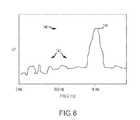 FIGS. 7A and 7B illustrateequalization curves150,150′ that result when an objects is proximately located to thedevice100, for example, when thedevice100 is held closely to a user'sface152, as shown inFIG. 8. As may be seen, theequalization curve150 inFIG. 7A is different from theequalization curve140 ofFIG. 5. In particular, thenoise142 has been reduced, while thepeak144 at about 1 kHZ is narrower than that of theequalization curve140 and it has a higher amplitude (e.g., more strength). This results from the object (e.g., the user's face152) brought into proximity of thedevice100 acting as a bandwidth limiter to effectively limit the frequency band of sound waves that may be received at an audio transducer. Further, certain frequencies are amplified due to resonance based on the characteristics of the device relative to the user'sface152. Thesound waves130 may be both band limited and certain frequencies amplified based in part on the shape and size of the resonant cavity formed by theaperture106 and/or between the user/object and thedevice100. Theequalization curve150′ inFIG. 7B shows a similar reduction in noise, but thepeak144′ is strongly attenuated relative to thepeak144 inFIG. 6. The strong attenuation may indicate that the device is in close proximity to an object. As such, characteristics of the equalization curve may be evaluated to make a proximity determination.