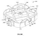 In the example shown, each biasingmember1118 includes a grippingmember1120 and tworesilient arms1122. Alatch1110 is shown extending radially outwardly from each grippingmember1120. As shown, each grippingmember1120 is held in sliding contact with thebase1113 by a pair ofcatches1123 that limits the grippingmember1120 to movement in a radial direction. As exemplified, radially inward movement of each grippingmember1120 is effected by resilient bending of the corresponding pair ofresilient arms1122. Eachlatch1110 can be withdrawn radially inwardly of theside walls1114 by applying sufficient radial inward force to the grippingmember1120 to bend theresilient arms1122. While bent, theresilient arms1122 exert a biasing force urging the grippingmember1120 and thelatch1110 radially outwardly to return to the resting position shown inFIGS. 25A and 25B.