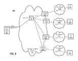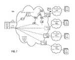 In the various illustrative embodiments described above, the communications between the servers and other described equipment may be accomplished through a group of networks, which are represented by clouds (e.g.,102,104,202A-B,602,603,702,704A-D). The networks represented by clouds may include a single network or combination of networks, including one or more private or public, local or wide area, networks and in-home networks, which may be wired and/or wireless. These may include, for example, coaxial, fiber, or hybrid fiber/coaxial distribution systems (e.g., a DOCSIS network), digital subscriber line (DSL) networks, a satellite communication networks, wireless and cellular networks, and/or a PBX networks, and combinations thereof. The networks may also include various routers, gateways, servers, antennas, repeaters, satellites, etc., for receiving and transmitting data through the network.