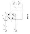 In some implementations, thecircuits100,130,160,190 can be combined with other circuits or circuit components, including: voltage regulators, operational amplifiers (op amps), transistors, etc. to produce different form factors with different functions. As discussed below, one or more resistors may be used in some implementations, in an AC portion of a circuit, a DC portion of a circuit, or both AC and DC portions of a circuit. Similarly, where a single capacitor is shown inFIGS. 1A-1D, multiple capacitors may be used, connected together in series and/or in parallel to achieve a desired capacitance value, or to provide other circuit characteristics.