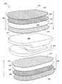 FIG. 28 is an exploded perspective view showing composite layers forming the endplates ofFIG. 1 as applied to an artificial disc, according to an embodiment.