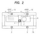According to this embodiment, for instance, for the lighting pattern p01 inFIG. 6, theimage sensing device29 is selected. Likewise, for the lighting pattern p02 inFIG. 6, theimage sensing device28 is selected. Accordingly, asupporter44 only requires a vertical dimension half as large as that of thesupporter13 of the first embodiment, thus downsizing the entire apparatus. This configuration negates the need to arrange the image sensing device at the center of the four lighting devices. Thissupporter44 thus negates the need to form a bridge part at the center, which is formed in thesupporter13 of the first embodiment. In the case of arrangement with theprojector6, the degree of freedom in arrangement is increased.