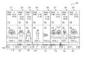 FIG. 7B is an illustrative block diagram ofmusic video700 ofFIG. 7A in accordance with various embodiments. Block diagram702 ofmusic video700 describes how portions of various video takes are used to formmusic video700. In some embodiments, block diagram702 may include three video takes—Take 1, Take 2, and Take 3. For example, a user may capture each video take at a different location and the captured images may differ for each video take. In the illustrative example, each video take may also be of equal duration as an audio track, such as a selected audio track used forwaveform760.