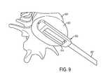 FIG. 9 illustrates thedevice800 in use, providing a posterior view of anendplate902 of avertebra904 with thedevice800 positioned over theendplate902. An adjacent vertebra is not shown for the sake of simplicity. Theopening818 in thebody802 of thetrial device800 can be used to view the surface of theendplate902 in accordance with some embodiments. It should be appreciated that the way in which theoptical trial device800 is positioned over theendplate902 inFIG. 9 is shown by way of example only, and thedevice800 can be inserted into the intervertebral space in a variety of ways.