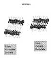 FIG. 6 shows the impact of ester chain length during molecular modeling of cholesterol esters using SYBYL (Tripos, St Louis Mo.) on an HP XW8000 workstation. Shown is the contrasting models formed using different pairs of approximately equal alkyl chain length cholesterol esters. The GASTIGER Huckel method was used to calculate charges, which are the input for the electrostatic isopotential map. The isopotential surfaces displayed are at −10 and +10 kcal to highlight the ester link and the sterol nucleus. The red color is −10; blue is +10 kcals. The resulting differences in the center of the figures are the ester links. Note that changing the length of the esters in the model does not change the surface or interior, but this change does bring the sterol nuclei closer to each other. It also changes size of internal diameter as well as character of the hydrophobic “tracks”.
