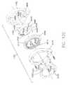 FIGS. 121 and 122 illustrate one further example of a release/connector mechanism4550 according to the teachings of the present invention. Here, instead of providing a flex ring, foursegments4552,4554,4556,4558 are provided around the periphery of thecommon hole4560 throughconnector mechanism4550. The four segments4552-4558 may be biased by any suitable mechanism. For example, segments4552-4558 may be connected to a rotating ring by arms in a similar manner asconnector mechanism4480.