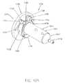 During retraction ofpiston5520, as illustrated, for example, inFIGS. 127A and 127B, the inner section ofpiston5520 moves rearward relative to the outer section ofpiston5520 for a distance determined by the cooperation ofpin5552 andpassage5532. During the rearward movement of forwardinner member5560 relative toplunger abutment section5540, slopedsurfaces5568 ofinner member5560contact pins5580 and causepins5580 to be in the extended state illustrated, for example, inFIGS. 127A and 127B.Plunger5910 is retracted with further rearward movement ofpiston5520 as a result of the abutment ofpins5580 with ledge orflange5918.