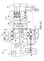 FIG. 4-1 schematically illustrates a battery isolator controller (BIC)101 utilized for voltage stabilization during an engine autostart event for a vehicle. It will be appreciated that theBIC101 is located within the vehicle that further includes at least an engine and a transmission. The vehicle may further include a motorized pump for providing pressured hydraulic fluid to the transmission when the engine is off. The engine starting event may correspond to either one of an engine autostart event and a key-on engine start event. As used herein, the term “engine autostart event” refers to the engine being started after the engine has been momentarily stopped and unfueled by an electronic engine control module (ECM) under specific driving conditions, such as when the vehicle is stopped at a stop light and a brake pedal is depressed. The engine autostart event can be initiated when vehicle motion is desired. As used herein, the term “key-on engine starting event” refers to the engine being started for the first time after the engine has been stopped and unfueled for an extended period of time during a key off event. This disclosure will be directed toward the engine starting event corresponding to the engine autostart event; however, it will be understood that embodiments herein can be equally applied to the engine starting event corresponding to the key-on engine starting event. While the term “battery” is utilized, it will be appreciated that theBIC101 is applicable to any type of energy storage device. TheBIC101 includes a battery distribution module (BDM)110, a primary electrical energy storage device (ESD)14, anauxiliary ESD20, anignition module11, astarter motor12, agenerator18, an electro-hydraulictransmission pump module42, astarter solenoid module40, astarter solenoid39 and a bussed electrical center (BEC) module68. While the ignition, electro-hydraulic transmission pump andstarter solenoid modules11,42,40, respectively, are depicted as separate modules in the illustrated embodiment, it will be understood thatmodules11,42,40 may all be integral to anengine control module5. TheBDM110 includes a plurality of BDM components including anauxiliary fuse terminal130, aprimary fuse terminal140, aswitch device module150, and aload module170. Theload module170 manages electrical power distribution from the primary andauxiliary ESDs14,20, respectively, to one or moreauxiliary loads16 of the vehicle each coupled to corresponding ones offuses172 of theload module170. The BEC module68 is electrically coupled to acorresponding fuse174 of theload module170 and manages power to loads requiring smaller currents than the one or moreauxiliary loads16 of the vehicle connected to theBDM110. In some embodiments, the BEC module58 can direct power to a plurality of electrical centers for managing smaller loads. For instance, the BEC module68 can direct power to electrical centers located in the front, rear and trunk of the vehicle.