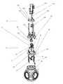 Although v-grooves are the form used in this first embodiment, thedepressions65 can be v-grooves, cylindrical pockets, or any other suitable structure which permits satisfactory registration of thealignment pins90. The pin and the alignment guide are manufactured from hardened steel or any material having equivalent resistance to deformation. The fixation means can be a locking nut threadedly engaging eachalignment pin90 on the underside of thealignment disk25 and rotatable relative thereto. The locking nuts andalignment pins90 are finely threaded to permit more accurate adjustment. It will also be clear that the pins and alignment guide, including the v-grooves, must be machined with a high degree of precision.