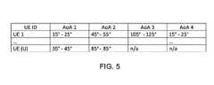 FIG. 5 shows a table of angles of arrival (AoAs) of major paths of UEs in accordance with an example;