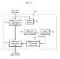 Thefilter700 further comprises active circuitry, including a receiver and transmitter for responding to command signals (e.g., “ping” signal) via a prescribed communications protocol, memory for storing a unique filter identifier (e.g., MAC address), and a power supply for supplying power to the active circuitry. In the embodiment shown inFIG. 7, the receiver is implemented in apower supply module704 that is coupled with the RF coaxial cable input. Thepower supply module704, in one or more embodiments, is configured to receive a DC signal component in the input signal supplied to thefilter700 and to extract a DC voltage therefrom; that is, the DC signal component is injected into the input signal from an external source. Thepower supply module704, in one or more embodiments, may optionally include a voltage regulator for providing a substantially constant DC supply voltage to the remaining active circuitry regardless of variations in the DC voltage level supplied to thefilter700.