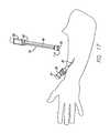 It may also be noted that the blunt cannula has a taperedbase section115 that tapers outwardly in the proximal direction. The blunt cannula base engages an inwardly taperedsection117 at thedistal end112 of theinsertion mechanism34; i.e., the section tapers inwardly in the distal direction. The two tapers are such that the blunt cannula cannot be removed from the insertion mechanism in the distal direction and the blunt cannula therefore can only extend a predetermined length from thedistal end112 of the insertion mechanism. Thus the bluntcannula control tube64 need not be rigidly mounted to theblunt cannula62. When the bluntcannula control tube64 is locked in position with the locking device of thetabs70 and theslots68, the blunt cannula is prevented from moving in the proximal direction by the lockingdevice70 and from moving in the distal direction by thetapers115 and117.