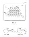 FIG. 45 shows an exemplary technique for placing thefibers4400 in an assembly-line fashion into a plurality ofbases4430 to formsubstrates4410. Afiber supply roller4500 may supply a plurality ofseparate fibers4400, for example, corresponding to at least the number ofmain venting channels4172 in a substrate. Thefibers4400 may be secured in position in themain venting channels4172 in thefirst base4430 and thefirst base4430 may move down a belt or other similar device, thereby pulling thefibers4400 with it. As thebases4430 move to the right shown inFIG. 45,new bases4430 to be supplied withfibers4400 are added to the left end. After a desired number ofbases4430 have been supplied withfibers4400, a film layer may be adhered to thebases4430 and the parts cut away from each other in the spaces between the parts shown.