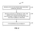 The one or more processors of the fitness monitor receive the PPG signal output by the photometric front end circuitry during idle operation (block202), analyze the output of the photometric front end during the idle state to determine a reference value characterizing the fitness monitor based on a determined variability of the PPG signal provided by the photometric front end circuit (block204), and store the determined reference value in a memory device of the fitness monitor (block206). The predetermined reference value may be calculated when the one or more photodiodes of the receiver are not receiving reflections of light output by the one or more emitters (e.g., LEDs) or receiving only predictable reflections (for example, from surfaces that are not living tissue) to characterize fitness monitor based on the inherent range of operating characteristics of components utilized to perform the measurements that may affect the accuracy of the monitoring device. In the idle state, the PPG signal output provided by the photometric front end circuit is not in response to, based on, or associated with unpredictable modulation of reflected light originating from the emitter, and thus the output of the photometric front end circuit during the idle state may be considered as an inherent “noise” characteristic, e.g., noise floor or base-level, of the fitness monitor, including the photometric front end circuitry.