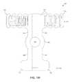 As illustrated inFIG. 14B, which is a bottom view of thepositioning arm106, the in-line collar308 includes a circularproximal edge312 and a stadium-shapeddistal edge314. The offsetcollar310 includes a circularproximal edge316 and a rounded-rectangle-shapeddistal edge318. As seen inFIG. 14B, apartition wall320 having generallyparallel side walls322 separates the in-line collar308 and the offsetcollar310. The in-line collar308 also includes aninner side wall324 that is opposite of and generally parallel with thepartition wall320. Extending between theinner side wall324 and theside wall322 of thepartition wall320 is arounded wall340. Opposite therounded wall340 is asloped wall342 that extends from aforward end344 of the circularproximal edge312 to aforward end346 of the stadium-shapeddistal edge314. In this way, an anchor arm positioned within the in-line collar310 is restrained from angling outside a plane defined by the positioningmember328 by theside wall322 of thepartition wall320 and theinner side wall324. The anchor arm may, however, angulate within the plane that is common to thepositioning member328.