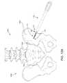 To begin, reference is made toFIG. 13A, which is a posterior view of ahip region1002 of askeletal structure1006 and an isometric view of ananchor arm102 approaching a lateral surface of anilium1005. As seen in the figure, thedistal end116 of theanchor arm102 may be coupled with aproximal end118 of ananchor element120 and thedistal end124 of theanchor element120 may be positioned to be delivered non-transversely or across the sacroiliac joint1000. In this case, thedistal end124 of theanchor element120 is positioned to be delivered first through theilium1005 and then through thesacrum1004. Theanchor arm102 may, however, be positioned to deliver theanchor element120 non-transversely first through thesacrum1004 and then through theilium1005.