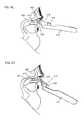 It should be also be appreciated that in some instances the delivery device (1200) may be temporarily configured to prevent advancement of the plunger (1206) between the retracted position shown inFIGS. 12A-12D and the extended position shown inFIGS. 12E and 12G. In some variations, the delivery device (1200) may comprise an intermediate stop, which may temporarily limit advancement of the plunger (1206) between the retracted and extended positions. For example,FIGS. 13A-13D depict a variation of the cannula (1202) of the delivery device (1200) ofFIGS. 12A-12I with the plunger (1206) and tongue (1204) removed. As shown there, the cannula (1202) may comprise a bumper plate (1300). The bumper plate (1300) may be moveable between a lowered position (as shown in rear and front perspective views inFIGS. 13A and 13C) and a raised position (as shown in rear and front perspective views inFIGS. 13B and 13D). When the bumper plate (1300) is in the lowered position, the bumper plate (1300) may block advancement of the plunger (1206) to the extended position shown inFIGS. 12E and 12G. For example, the plunger (1206) may be advanced with the bumper plate (1300) in the lower position until the stopper portion (1230) reaches and contacts the bumper plate (1300). The engagement between the stopper portion (1230) and the bumper plate (1300) may temporarily prevent further advancement of the plunger (1206) relative to the cannula (1202). Conversely, when the bumper plate (1300) is in the raised position, the stopper portion (1230) may pass under the bumper plate (1300) and may allow the plunger (1206) to be advanced to the extended position.