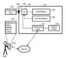 FIG. 8 illustrates an example ofcloud services300 interfacing with thevehicle102. TheCU204, connected bycord208 can connect to point109 ofvehicle102.Interface190 will provide a junction that is switch-connected to one or both of themain battery180 orauxiliary battery120. Thevehicle102 can includeautomobile logic132 anddisplay130. Theautomobile logic132 can communicate with the internet and the cloud services300. Cloud services300 can be connected to a number of systems and subsystems. One subsystem is an advertising back-end330. Advertising back-end is an interface that allows publishers of advertising to submit ads to be forwarded to EVs, CUs, and others in the chain of charge systems. In one embodiment, the advertising is context specific. The context can be in relation to the geographic location of the charge unit and the surrounding goods and services associated with the ad. In another embodiment, the contextual relation can include information concerning the user or users associated with an account used to charge the vehicle. The account can include or be associated with databases that store likes and dislikes of the user, preferences, historical buying data, and data associated with other users that have similar characteristics. In one embodiment,CUIP owners350,business owners360, and other third-party entities can submit and post advertisements. The Cloud services300 can also be connected to utilities back-end320, home charging costs322, public charging costs324, etc.