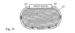 FIG. 13 schematically illustrates a smart watch placed around a wrist configured for reflectometry measurements, in accordance with some embodiments of the present invention;