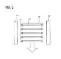 In the sputtering chamber, a pair of sputtering targets is placed so that the plurality ofsubstrates13 fixed by fixingmembers14 of asubstrate holder15 are positioned between the pair of sputtering targets. In other words, as illustrated inFIG. 2, thesubstrate holder15 is placed so that the surfaces of the substrates are substantially perpendicular to the surfaces of the sputtering targets.