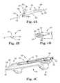 For “loading” the device, thegear engagement assembly144 is inserted through theopening432 into the handle and is removably connected with theprime mover carriage124 housed within the interior120 in theintermediate section110 of thehandle420. As described elsewhere, theprime mover gear128 and thedrive shaft gear148 will mesh when theprime mover carriage124 and thegear engagement assembly144 are connected with one another. Next, as indicated by thedirectional arrow438, thetrough406 and thetubular section404 of thedistal section402 are inserted into thedistal section422 of thehandle420 through theopening432. Thedistal section402 and at least thedistal section422 of thehandle420 are displaced in opposite directions towards each other until the first andsecond sections434 and436 of the connector engage one another. In the illustrated embodiment, to “unload” the device, for example to change or replace the drive shaft cartridge, thedistal section402 and at least thedistal section422 of thehandle420 are displaced in opposite directions away from each other while concurrently pushing or pressing at least thefirst section434 of the connector in the direction indicated by thearrow440. Concurrently, or subsequently, thegear engagement assembly144 and theprime mover carriage124 are disconnected and thegear engagement assembly144 is removed from thehandle420 through theopening432.