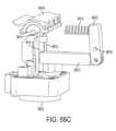 Referring toFIG. 87C, theresetting arm8735 includes threemembers8736,8738,8742. Afirst member8736 of theresetting arm8735 is attached to thedoor8702band to asecond member8738 of theresetting arm8735. Thesecond member8738 of theresetting arm8735 is attached to athird member8742 of theresetting arm8735. Opening thedoor8702bactuates thefirst member8736, which in turn actuates thesecond member8738 and thethird member8742. Thethird member8742 has a projection configured to engage thetab8740 and urge it back to the non-engaging parallel position (as shown inFIG. 69D) when it engages thetab8740. In additional embodiments, resetting thesafety cutoff8734 can be accomplished with less or more members if desired.