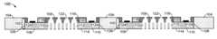 In addition to a fluidic architecture defined by layer(s)118 onsilicon substrate110, each diesliver102 includes integrated circuitry formed on thesubstrate110 using thin film layers and elements (not shown). For example, corresponding with eachejection chamber120 is an ejection element, such as a thermal resistor ejection element or a piezoelectric ejection element, formed on thesecond surface116 ofsubstrate110. The ejection elements are actuated to eject drops or streams of ink or other printing fluid fromchambers120 throughorifices122. Thus, eachchamber120 andcorresponding orifice122 and ejection element generally make up a fluid drop generator formed on thesecond surface116 ofsubstrate110. Ejection elements on each diesliver102 are connected to bondpads124 or other suitable electrical terminals on thedie sliver102, directly or throughsubstrate110. In general, wire bonds connect the diesliver bond pads124 to a printed circuit board, and the printed circuit board is connected through signal traces in a flex circuit922 (FIGS. 10, 11) to a controller (FIG. 9, 914;FIG. 12, 1212) on an inkjet printing device (FIG. 9, 900;FIG. 12, 1200), as described in international patent application number PCT/US2013/068529, filed Nov. 5, 2013 titled Molded Printhead, which is incorporated herein by reference in its entirety.