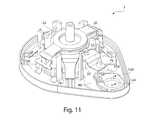FIG. 15 is a perspective view of a device in yet another embodiment of the invention with the cover removed and having a rotatable release element;