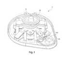 FIG. 44 is a perspective view of a device with the cover removed in yet another embodiment of the invention, having a release element and a torsion spring;