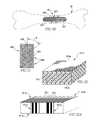 InFIGS. 32-32A, thespacer fabrics1810,1810ainclude top and bottom panels1814a-1814hand1814c-1814drespectively. InFIG. 32 themiddle section1813 includes an essentially uniform distribution of fibers extending between the top andbottom panels1814a,1814b. InFIG. 32A, groups ofvertical fibers1813aare spaced apart. As one example, for a piece ofspacer fabric1810athat is about 14 mm wide and about 8 mm thick, the groups offibers1813amay have widths of about 3 mm with spacings of about 2 mm betweengroups1813a. Of course, these dimensions can vary greatly and will depend on the width, thickness and desired compressibility and expandability properties of the spacer fabric.