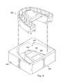 FIG. 6 is a perspective view of theCOPA device100 and themicro-pump unit300 positioned for coupling according to embodiments of the present disclosure. Themicro-pump unit300 is the core of theprescription dispensing unit120. Themicro-pump unit300 includes aprocessor310, areservoir320, anactuator330, and a plurality ofexit valves340. Theprocessor310 is configured to control themicro-pump unit300 and record activities associated with theCOPA device100, for example, dosage delivery time and amount, charged time, and/or wireless communication activities. Thereservoir320 is configured to hold a prescribed substance, for example, as formulated for delivery via themicro-pump unit300. Theactuator330 is configured to push or deliver an exact dosage of the prescribed substance upon activation. Theexit valves340 are positioned at the bottom of themicro-pump unit300 and are configured to release the prescribed substance for ingestion. More detailed views of themicro-pump unit300 are shown inFIGS. 7 and 8 and the interactions among the components of themicro-pump unit300 are described in greater detail below. Themicro-pump unit300 may be pre-packaged with a prescription through various mechanisms, as described in greater detail herein. As shown, theCOPA device100 may include acompartment114 sized and shaped to receive themicro-pump unit300. For example, the pre-packagedmicro-pump unit300 may be positioned within thecompartment114 and covered by the sealed sleeve124 (shown inFIG. 1) to form the sealedprescription dispensing unit120.