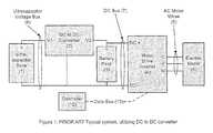 There are two major problems with a DC to DC converter based power sharing scheme. The first problem is that the aforementioned type of DC to DC converter does not exist in the market today. The industry has not matured yet. As a result, converters are prohibitively expensive and require a substantial up-front investment of non-recurring engineering costs. Contrast this with the motor drive market, which is quite mature. There exist today a large number of off the shelf, cost optimized motor drives from which a designer may select. The second major problem with a DC to DC converter approach is that efficiency is lost in the power conversion process. In any motor drive system, some amount of efficiency is lost as power passes through the motor drive in order to power the motor. With a DC to DC converter, a second power conversion process takes place for one of the two power sources. This power conversion causes an additional loss of efficiency for the associated power source.