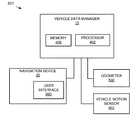 Anaccelerometer16 may also be communicably coupled to theVDM10. Theaccelerometer16 may be configured to measure proper acceleration, which may also be referred to as a specific force, or g-force. Theaccelerometer16 may be configured to provide a signal that can be used to calculate the current specific force, and/or provide an indication of a value of the specific force, to theVDM10. According to some embodiments of the present disclosure, theaccelerometer16 may be a dual-axis accelerometer, which indicates a specific force in each of two perpendicular directions. These two perpendicular directions may be aligned to be parallel or substantially parallel to the plane of the ground surface over which thevehicle101 travels, for example the plane formed by the lowermost point on each of the four tires. According to some embodiments of the present disclosure, one primary direction of alignment of theaccelerometer16 is parallel with the direction of travel of thevehicle101, while the other primary direction of alignment of theaccelerometer16 is perpendicular with the direction of travel of thevehicle101. Theaccelerometer16 may also be a three-axis accelerometer. A combination of two independent accelerometers in a way that operates as a dual-axis accelerometer may also be referred to as a dual-axis accelerometer, and a combination of three independent accelerometers in a way that operates as a three-axis accelerometer may also be referred to as a three-axis accelerometer, according to embodiments of the present disclosure.