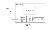 The nodes21-31 can also includenetwork interface device508. Thenetwork interface device508 can be a transceiving device configured to establish one or more wireless communication links via anantenna510. A non-limiting example of thenetwork interface device508 is an RF transceiver and can include one or more components for establishing a communication link to other nodes21-31 in themesh network10.