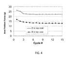 FIG. 4 is a graph showing the average measured frictional force in a vertical pinch test over a number of testing cycles.