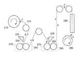 The coated membrane is directed to adrying area280 to dry the treated and coated TFC membrane. Drying can be accomplished using any technique, such as by using forced air dryers, heated forced air dryers, IR dryers, UV dryers, or any combination thereof. The temperature and speed of the web through the dryer or dryers can be adjusted so that temperature of a surface of the web reaches a temperature sufficient to evaporate at least a portion of the solvents of the backside treatment solution and the coating solution. The temperature and speed of the web through the dryer or dryers can be adjusted so that temperature of the web or at least one surface thereof reaches a temperature of at least 75° C., at least 80° C., or at least 85° C., or at least 90° C., or at least 95° C. When the solvent of the coating solution evaporates or is dried, a thin polymer layer or film is left behind on the frontside of the TFC membrane. The dried membrane is collected on take-up roll290.