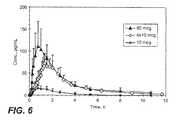 FIG. 6 is a graphic depiction of sufentanil plasma concentrations (mean+/−SD) versus time, following sublingual administration of 10, 40 (10 mcg every 20 minutes×4 doses) and 80 mcg sufentanil dosage forms (faster-eroding) in healthy human volunteers.