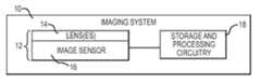 Storage andprocessing circuitry18 may include one or more integrated circuits (e.g., image processing circuits, microprocessors, storage devices such as random-access memory and non-volatile memory, etc.) and may be implemented using components that are separate fromcamera module12 and/or that form part of camera module12 (e.g., circuits that form part of an integrated circuit that includesimage sensors16 or an integrated circuit withinmodule12 that is associated with image sensors16). Image data that has been captured bycamera module12 may be processed and stored using processing circuitry18 (e.g., using an image processing engine onprocessing circuitry18, using an imaging mode selection engine onprocessing circuitry18, etc.). Processed image data may, if desired, be provided to external equipment (e.g., a computer, external display, or other device) using wired and/or wireless communications paths coupled to processingcircuitry18.
