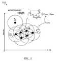 In this implementation, Block S110 can plot points corresponding to activity events in the activity bucket onto the graph that represents additional dimensions of activity events, such as locations coincident an activity event, an intensity of an activity event, distance traversed during an activity event, quality an activity event, etc. In particular, Block S110 can (virtually, mathematically) manipulate a graph including additional (e.g., a third, a fourth, a fifth) axes label according to additional dimensions of the activity events within the bucket. For example, for a bucket that further includes locations coincident activity events contained therein, Block S110 can plot the activity events on a graph further including a third (e.g., Z-) axis representing location (e.g., distance from an anchor point); similarly, Block S110 can plot the activity events on a graph further including a third (e.g., Z-) axis representation longitudinal location (e.g., longitudinal distance from an anchor point) and including a fourth (e.g., R-) axis representation latitudinal location (e.g., latitudinal distance from an anchor point). Block S110 can thus implement methods or techniques as described above to determine a mathematical “location distance” between the first and second activity events based on a physical distance between a geospatial location (e.g., GPS coordinates) associated with the first activity event and a geospatial location associated with the second activity event. In one example, when plotting the first activity event in the activity bucket onto the graph, Block S110 converts a location of initiation of the first activity event into a distance (e.g., feet, miles) from a common location anchor (e.g., the user's home) and labels this distance as d1. Block S110 also converts a time of initiation of the second activity event into a distance from the common location anchor and labels this distance as d2. (Block S110 can also scale d1and d2as described above.) Block S110 subsequently determines a “location distance” between the first and second activity events by calculating a difference between d1and d2and labels this DC.